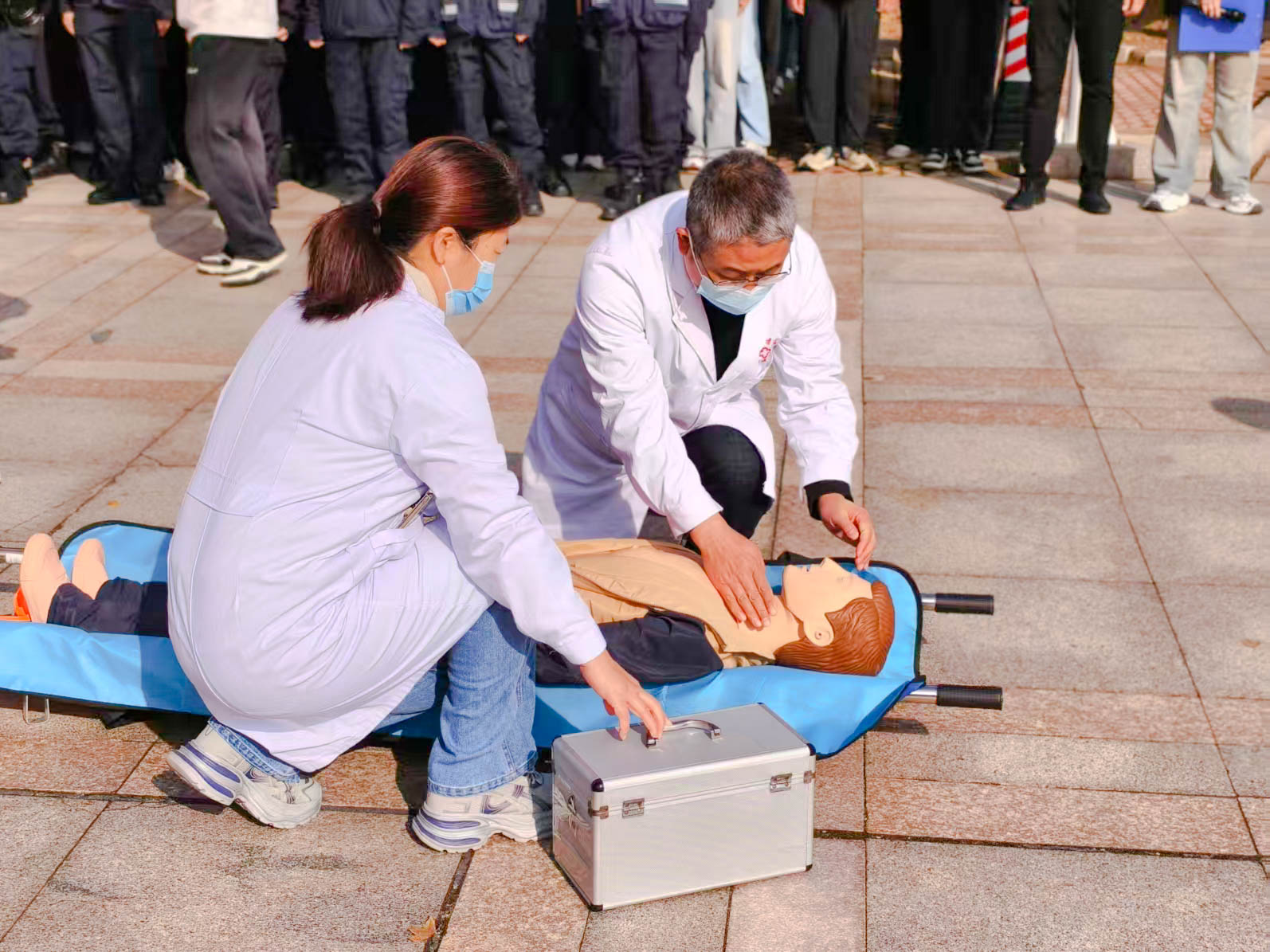 啟動儀式結(jié)束后,一場模擬學(xué)校圖書館二層自習(xí)室發(fā)生火災(zāi)、有人員被困的實戰(zhàn)化消防演練隨即展開。演練完整呈現(xiàn)了從校園初期響應(yīng)(微型消防站隊員分級滅火)到專業(yè)救援(銀河路消防救援站到場搜救、滅火)的全過程。消防員行動迅速,配合默契,成功救出“被困人員”并移交醫(yī)療組進(jìn)行模擬急救,環(huán)節(jié)緊湊,效果逼真。在緊隨其后的滅火器實操教學(xué)環(huán)節(jié),消防員詳細(xì)講解了“提、拔、握、壓”四字使用要領(lǐng)及初期火災(zāi)撲救注意事項,并指導(dǎo)師生代表親身體驗滅火操作,有效提升了師生對消防器材的實際應(yīng)用能力和火場應(yīng)急避險技能。