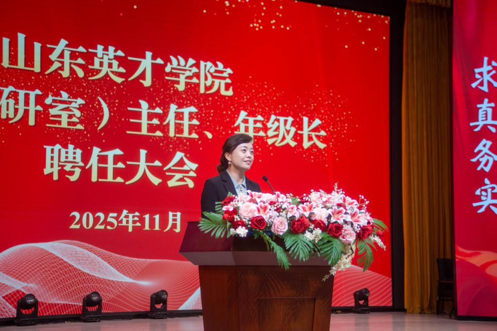 執(zhí)行校長、黨委副書記王曉娜作總結(jié)講話。她首先向新任系(教研室)主任、年級長表示熱烈祝賀,并向原任干部致以崇高敬意與衷心感謝。王校長指出,系(教研室)主任與年級長作為學(xué)校發(fā)展的“核心骨干層”,肩負(fù)著連接頂層設(shè)計與基層執(zhí)行的關(guān)鍵使命。她圍繞“責(zé)任與使命”主題,從五個方面提出殷切期望:一要胸懷大局、精準(zhǔn)定位,做到“接天線”與“接地氣”相結(jié)合,架起上下貫通的溝通橋梁;二要破壁融合、匯聚合力,推動教學(xué)與團(tuán)學(xué)深度融合,整合校內(nèi)外資源,構(gòu)建“三全育人”工作格局;三要貫通鏈條、賦能成長,實現(xiàn)從招生到就業(yè)、從教學(xué)到科研、從成長到成才的全流程服務(wù);四要拓寬視野、勇于創(chuàng)新,跳出“舒適區(qū)”,勇闖“新賽道”,以開拓思維推動院系特色發(fā)展;五要強化擔(dān)當(dāng)、善作善成,以守土有責(zé)的自覺、求真務(wù)實的作風(fēng)和實績?yōu)橐膶?dǎo)向,扛起高質(zhì)量發(fā)展重任。