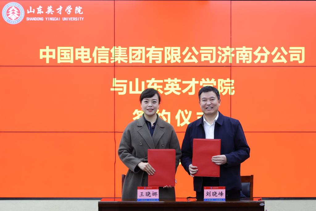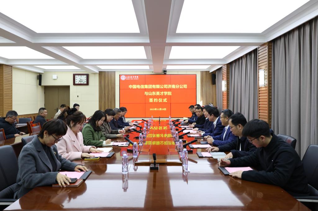 11月19日,山東英才學(xué)院與中國(guó)電信集團(tuán)有限公司濟(jì)南分公司在學(xué)校辦公樓第一會(huì)議室舉行人工智能戰(zhàn)略合作簽約儀式。山東英才學(xué)院黨委副書(shū)記、執(zhí)行校長(zhǎng)王曉娜、副校長(zhǎng)崔奎勇,紀(jì)委書(shū)記、副校長(zhǎng)李曉玲,校長(zhǎng)助理張瑞君,中國(guó)電信集團(tuán)有限公司濟(jì)南分公司總經(jīng)理劉曉峰等領(lǐng)導(dǎo)出席儀式。簽約儀式由副校長(zhǎng)崔奎勇主持。