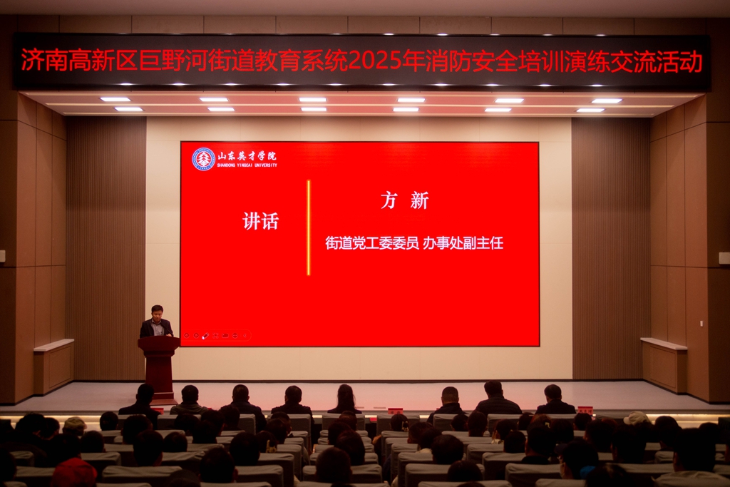 11月26日,濟(jì)南高新區(qū)巨野河街道教育系統(tǒng)2025年消防安全培訓(xùn)演練交流活動在山東英才學(xué)院舉行?;顒佑删抟昂咏值擂k事處主辦,山東英才學(xué)院承辦。巨野河街道黨工委委員、辦事處副主任方新,山東英才學(xué)院紀(jì)委書記、副校長李曉玲,駐地各學(xué)校安全工作負(fù)責(zé)人及山東英才學(xué)院消防安全重點(diǎn)崗位教職工參加。