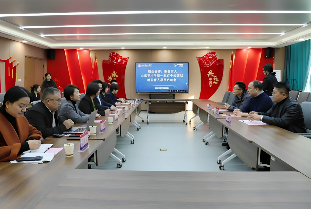 11月26日,山東英才學(xué)院與北京中云國創(chuàng)數(shù)據(jù)科技有限公司在商學(xué)院(國際學(xué)院)408會(huì)議室舉行“教育部供需對接就業(yè)育人項(xiàng)目”揭牌暨啟動(dòng)儀式,標(biāo)志著校企雙方在深化產(chǎn)教融合、共育應(yīng)用型人才方面進(jìn)入實(shí)質(zhì)性合作新階段。學(xué)校副校長孫文紅、商學(xué)院(國際學(xué)院)院長趙坤、副院長王鸞,與北京中云國創(chuàng)數(shù)據(jù)科技有限公司數(shù)字經(jīng)濟(jì)事業(yè)部總經(jīng)理李建波等雙方代表出席儀式。