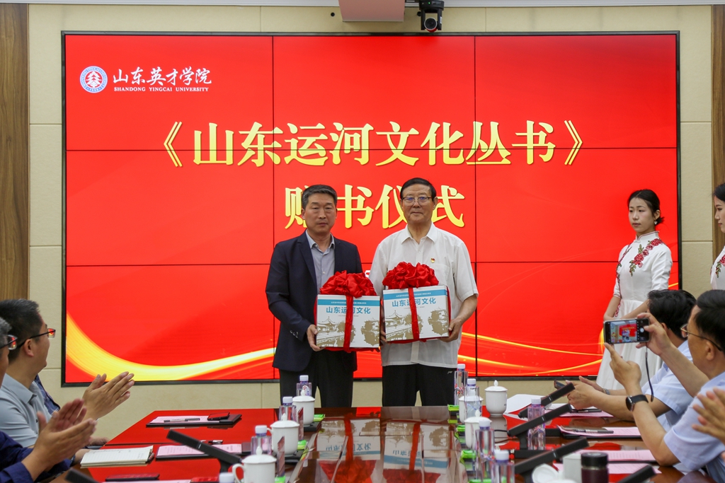 運(yùn)河中心專家代表李金陵向山東英才學(xué)院贈(zèng)送了《山東運(yùn)河文化叢書》,運(yùn)河中心高級(jí)咨詢王棟宣讀授予山東英才學(xué)院“副理事長(zhǎng)單位”,聘任王曉娜為“副理事長(zhǎng)”,并頒發(fā)榮譽(yù)牌匾與聘任證書。王曉娜表示,學(xué)校將深刻理解運(yùn)河文化精髓,發(fā)揮學(xué)科和資源優(yōu)勢(shì),探索運(yùn)河經(jīng)濟(jì)文化與教育教學(xué)的融合路徑,為全省運(yùn)河經(jīng)濟(jì)文化發(fā)展貢獻(xiàn)力量。