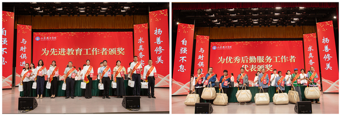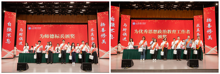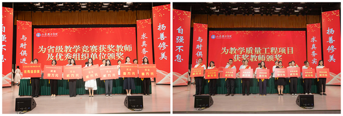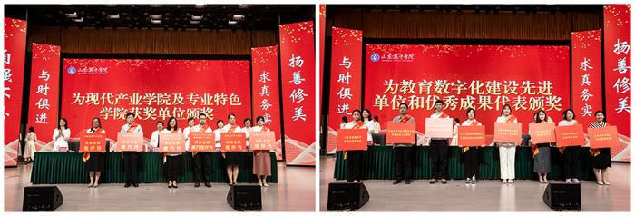 山東英才學(xué)院全校教職工緊緊錨定“走在全省應(yīng)用型高校前列”總目標(biāo),銳意進(jìn)取、奮發(fā)有為,各項(xiàng)工作取得新突破,涌現(xiàn)出一批先進(jìn)集體和個(gè)人。與會校領(lǐng)導(dǎo)共同為獲獎(jiǎng)單位及個(gè)人頒獎(jiǎng),對在教學(xué)競賽、產(chǎn)業(yè)學(xué)院建設(shè)、教學(xué)科研、管理服務(wù)、科研創(chuàng)新等領(lǐng)域表現(xiàn)突出的教職工予以表彰。