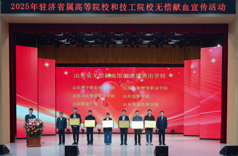 活動中,宣讀了關(guān)于表揚(yáng)山東省高等院校和中職學(xué)校無償獻(xiàn)血、造血干細(xì)胞捐獻(xiàn)表現(xiàn)突出集體及個人的通報和關(guān)于表揚(yáng)2025年“學(xué)雷鋒進(jìn)校園,無償獻(xiàn)血志愿行”活動表現(xiàn)突出學(xué)校的通報,并向有關(guān)院校頒發(fā)了獎牌。