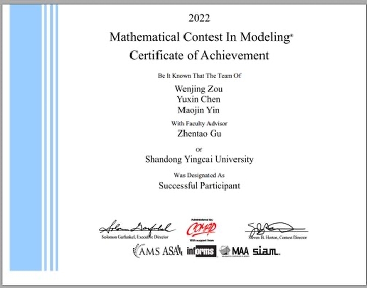 近日,2022年美國(guó)大學(xué)生數(shù)學(xué)建模競(jìng)賽成績(jī)揭曉,山東英才學(xué)院代表隊(duì)斬獲國(guó)際二等獎(jiǎng)(HonorableMention)1項(xiàng)、國(guó)際三等獎(jiǎng)(SuccessfulParticipant)1項(xiàng)。