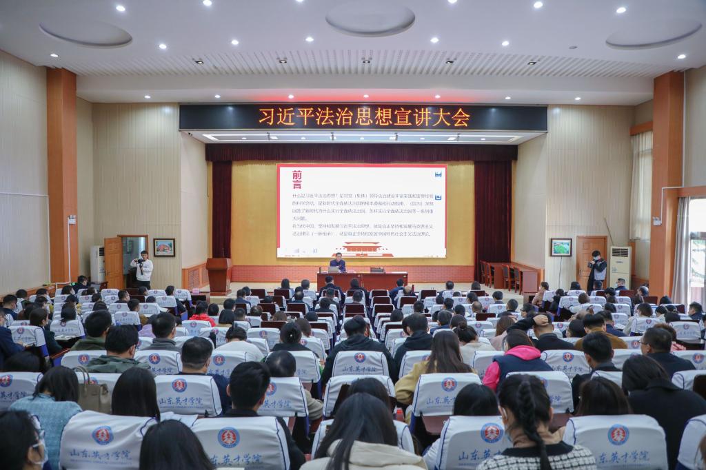 11月15日,山東英才學(xué)院在南、北校區(qū)學(xué)術(shù)報(bào)告廳舉行學(xué)習(xí)貫徹習(xí)近平法治思想宣講大會(huì),邀請京魯律師事務(wù)所黨支部書記,濟(jì)南市律師協(xié)會(huì)副會(huì)長郝紀(jì)勇做宣講報(bào)告。學(xué)校黨政班子成員、二級(jí)學(xué)院黨政班子成員、機(jī)關(guān)相關(guān)人員、黨建工作指導(dǎo)員和按要求需要參訓(xùn)的黨員出席會(huì)議,會(huì)議由校長劉珊珊主持。