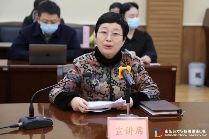 (學(xué)校黨委書(shū)記朱曉梅,為師生作宣講報(bào)告)