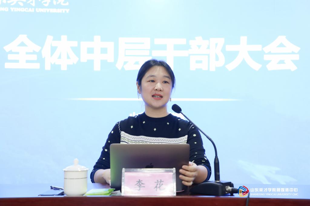 下午,學(xué)校在藝體中心報(bào)告廳召開中層干部會(huì)議,李花董事長出席會(huì)議并講話,學(xué)校黨委書記朱曉梅出席會(huì)議。會(huì)議由劉珊珊校長主持。