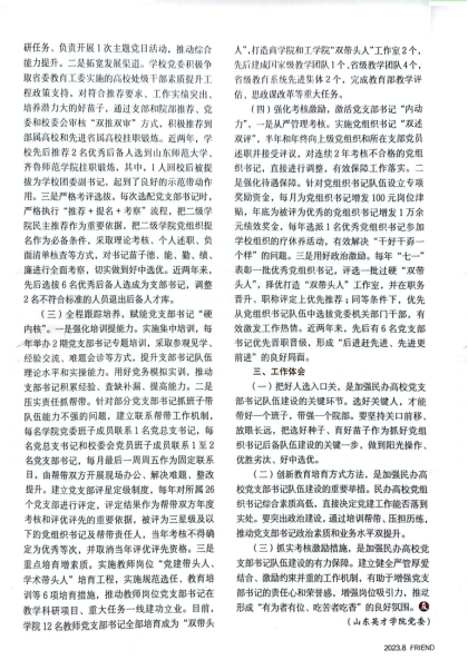 近日,《黨員干部之友》2023年第8期刊發(fā)山東英才學(xué)院黨建工作典型經(jīng)驗做法:《實施“頭雁”培育工程 鍛造民辦高校黨建工作鐵軍》。