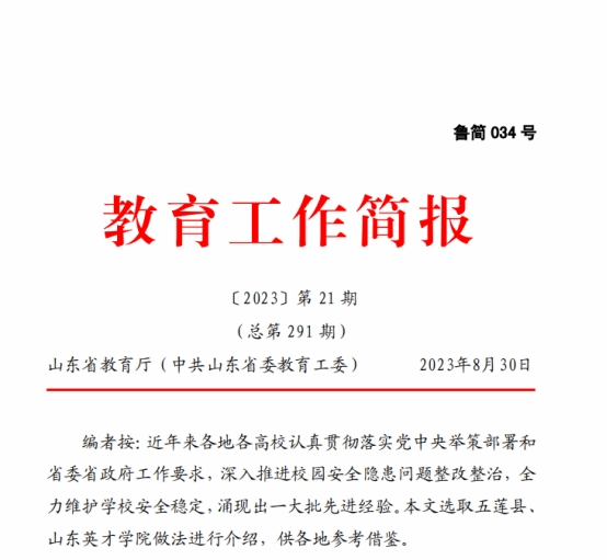 山東英才學院堅持把維護校園安全穩(wěn)定和師生生命健康放在首位,以學生成才和學校發(fā)展為中心,在安全責任體系、安全防范體系、應急管理體系建設等重點工作上深耕發(fā)力,守牢守好安全發(fā)展底線。