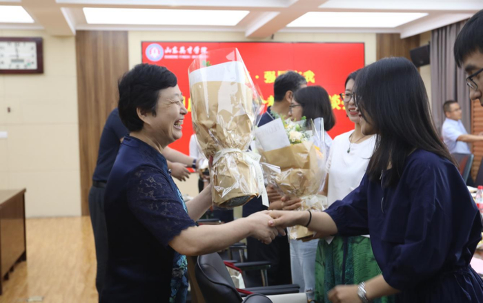 座談會上,山東英才學院校領(lǐng)導集體為教師代表獻上鮮花,以此敬謝教師,感謝教師們的辛勤耕耘、無私奉獻。學校教學督導鄭強教授首先發(fā)言,以切身經(jīng)歷、詳實事例,對學校提質(zhì)改造、內(nèi)涵變化給予充分肯定;對教師精業(yè)敬業(yè)、職能部門精干能干給予高度贊揚;對學校發(fā)展愿景、美好明天充滿希望。