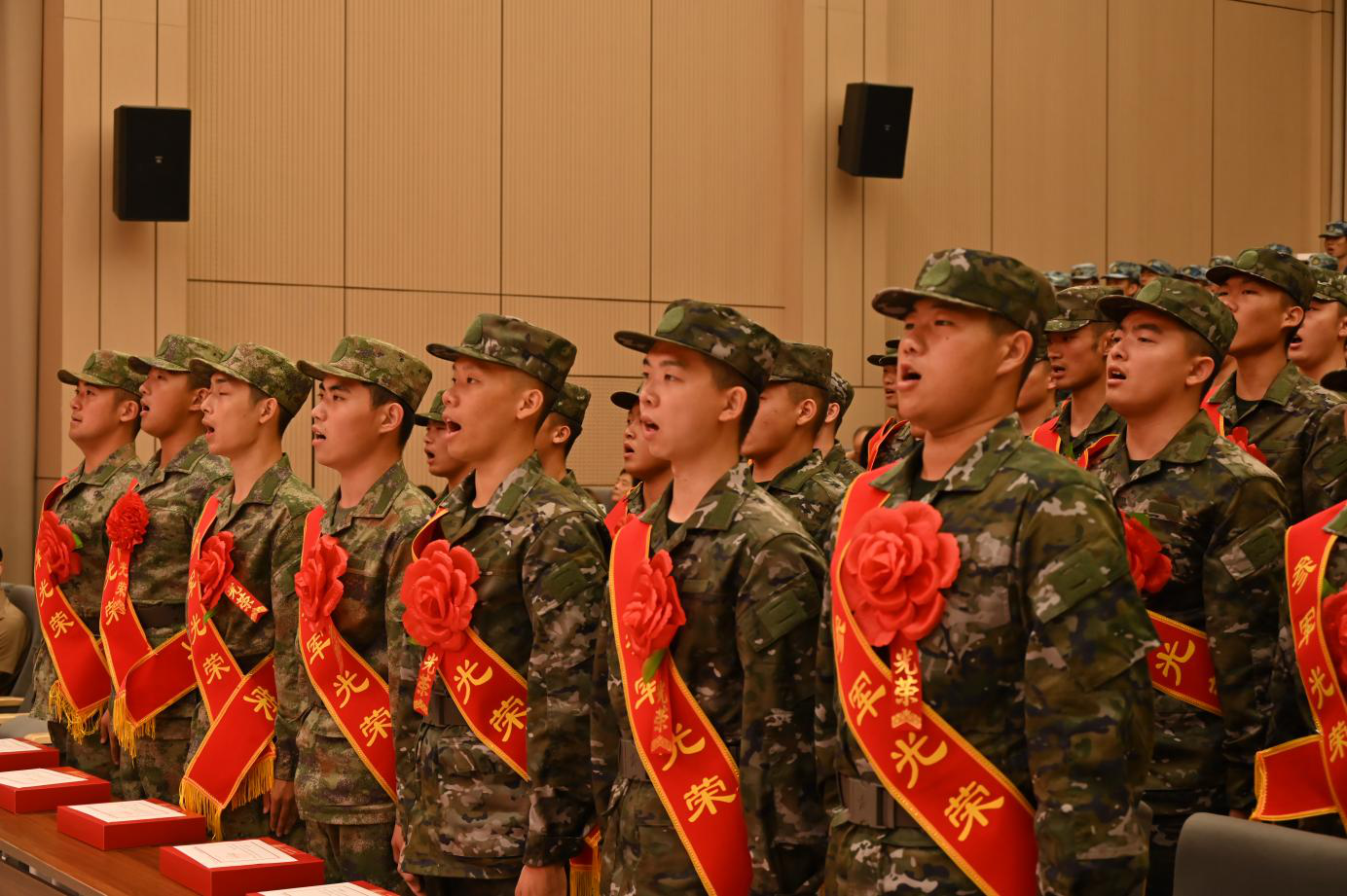 歡送會在嘹亮的國歌聲中拉開序幕,新兵們胸戴紅花、身披綬帶,軍姿挺拔,帶著對軍營的向往和憧憬,整齊列隊。與會領(lǐng)導為入伍新兵頒發(fā)入伍通知書及紀念品,入伍新兵代表向?qū)W校贈送錦旗。