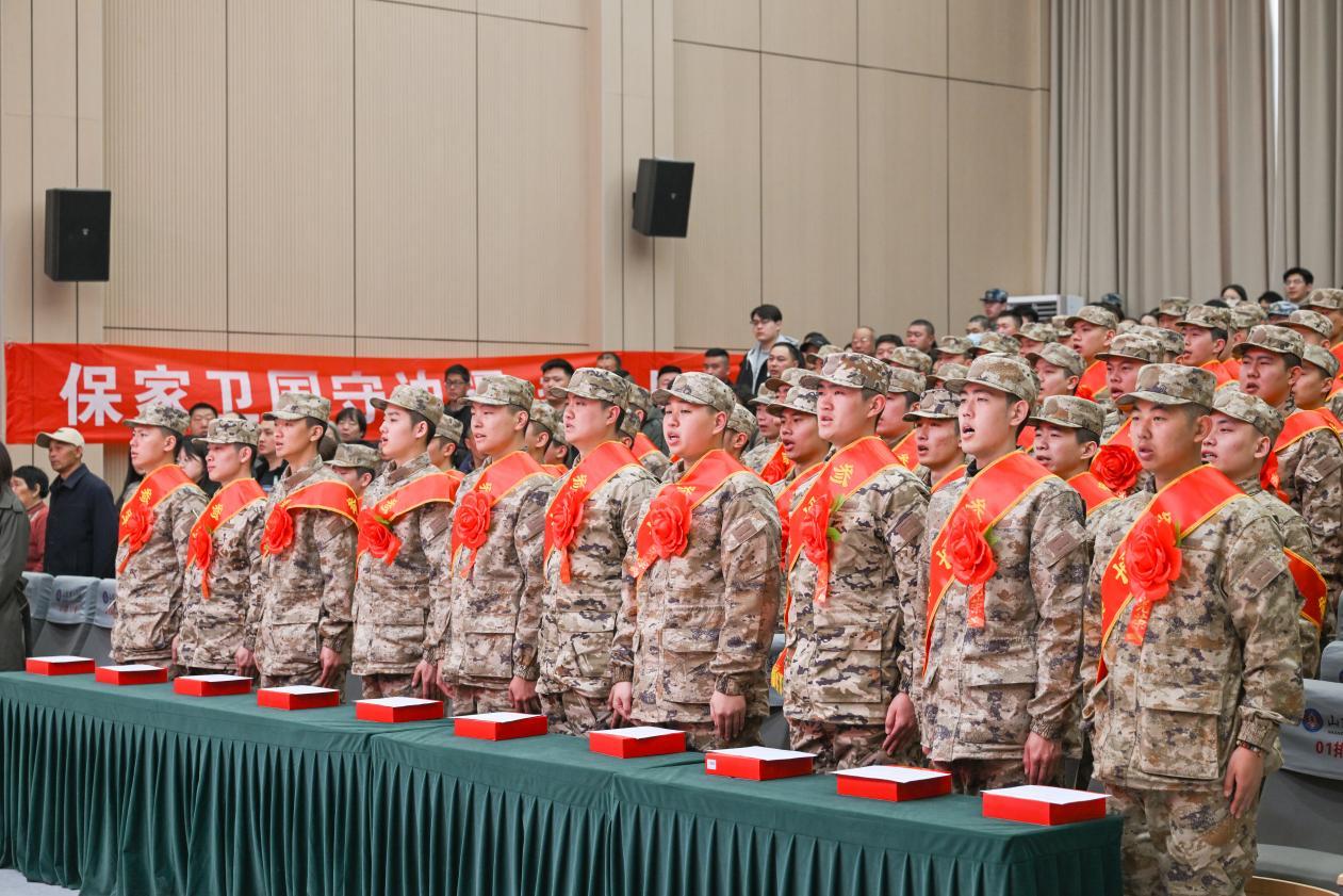 入伍學生代表馮栩棟在發(fā)言中感謝學校的培養(yǎng)教育,他代表全體應征入伍學生承諾,進入部隊后一定會刻苦訓練、努力學習,使自己盡快成長為一名合格的、優(yōu)秀的軍人,為實現(xiàn)中國夢強軍夢貢獻青春和力量。