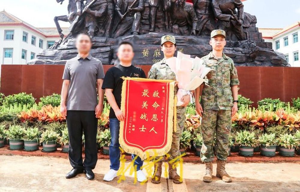 丁翠的善舉,及時挽回了該男子的生命,也充分展現(xiàn)了人民子弟兵的良好風(fēng)采和過硬的專業(yè)素養(yǎng)。6月20日,獲救者通過多方打聽找到了單位駐地,并向丁翠贈送了“最美戰(zhàn)士、救命恩人”錦旗,表示了深切感謝,同時還寫了感謝信。信中這樣寫道:“在其他人都驚慌失措的情況下,她不僅沒有驚慌,而且還熱情幫助,并且手法相當(dāng)專業(yè)。雖然沒有穿軍裝,但是在危難面前,仍然挺身而出!這就是中國人民解放軍!”
