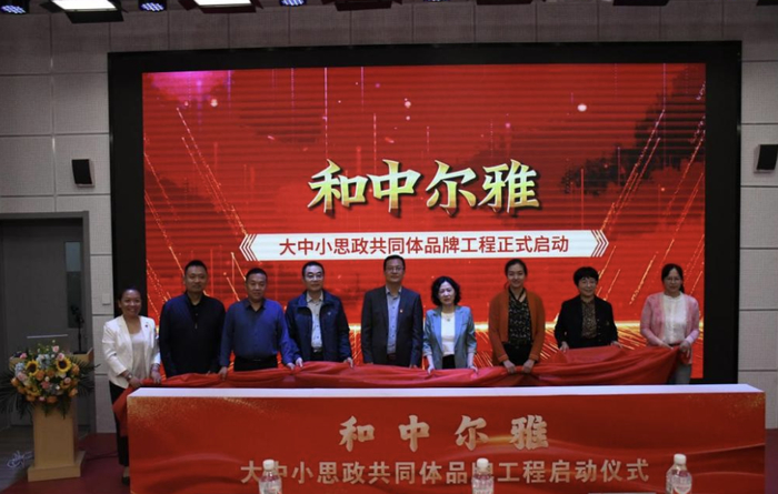 啟動(dòng)儀式上,出席活動(dòng)的教體局領(lǐng)導(dǎo)、共同體成員校領(lǐng)導(dǎo)在音樂聲和熱烈的掌聲中共同啟動(dòng)“和中爾雅”大中小學(xué)思政共同體品牌工程。