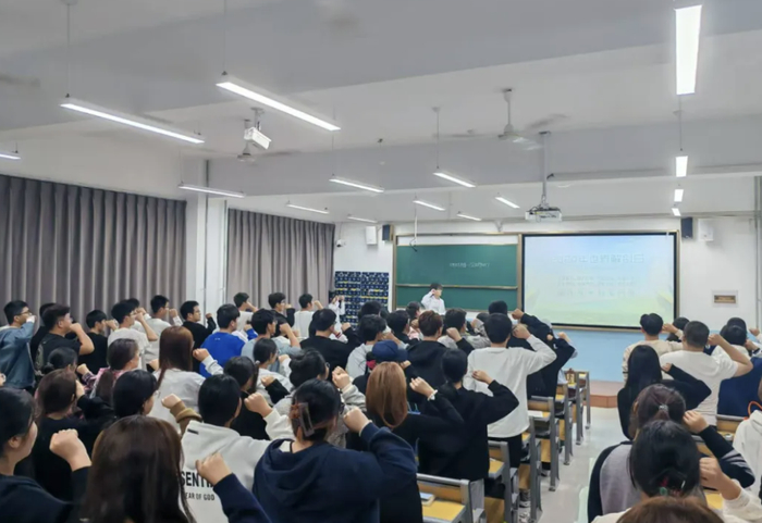 緊接著,山東英才學院“生命與健康”志愿服務團隊副隊長韓江悅同學帶領此次參加活動的成員們莊嚴宣誓。他們高舉右手,聲音洪亮,誓言在活動現(xiàn)場回蕩。不僅彰顯了同學們對解剖學的敬畏和對生命的尊重,更體現(xiàn)了他們?yōu)獒t(yī)學事業(yè)奉獻的決心。