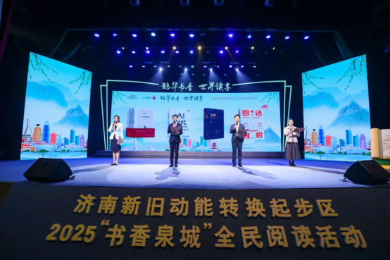 4月22日,由中共濟南市委宣傳部指導,濟南新舊動能轉(zhuǎn)換起步區(qū)宣傳文化部主辦,濟南廣播電視臺、山東英才學院承辦,濟南新舊動能轉(zhuǎn)換起步區(qū)2025全民閱讀季在山東英才學院啟動。本次活動以“鵲華書香·世界讀享”為主題,市委宣傳部有關(guān)領導以及主辦、承辦單位有關(guān)領導出席啟動儀式。