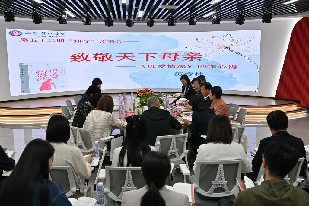 2025年5月9日上午,在母親節(jié)來臨之際,山東英才學院以“感恩母愛·共話深情”為主題,在南校區(qū)圖書館思政體驗廳舉辦第五十二期“知行”讀書會?;顒犹匮袊嗄瓿霭嫔缧鲁霭娴纳⑽募赌笎矍樯睢纷髡邊枏┝趾蜕綎|建筑大學、山東青年政治學院、山東女子學院、山東管理學院等學校嘉賓,與師生讀者共赴一場以書為媒的深情對話,用文字與故事致敬平凡而偉大的母愛。同學們表示一定銘記母親恩德,奮力成長成才。