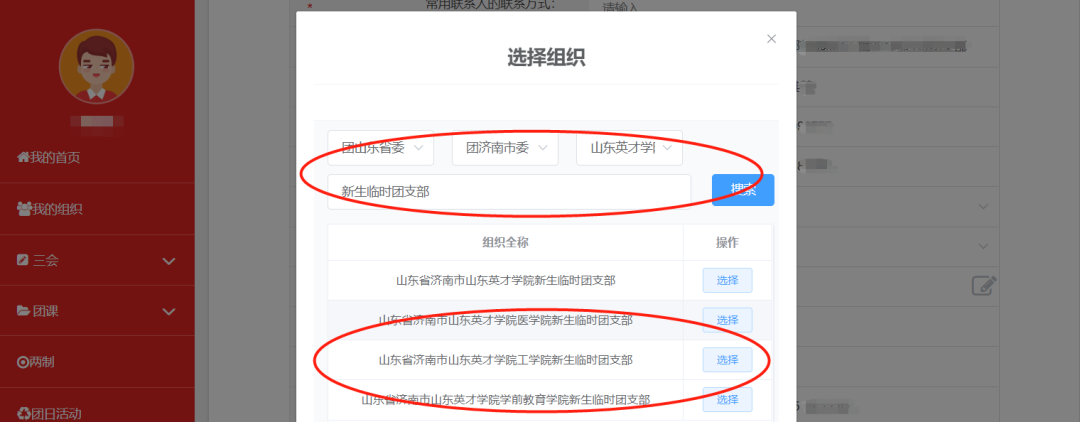 選填:團山東省委 團濟南市委 山東英才學院團委