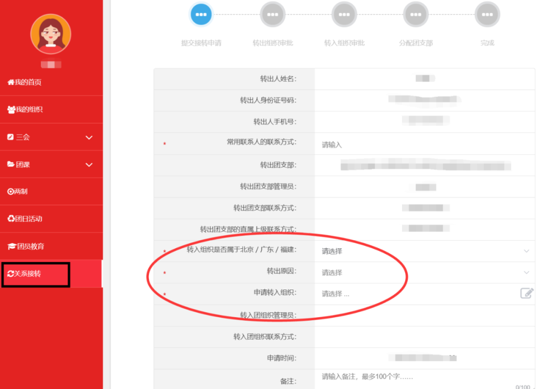 轉(zhuǎn)接申請?zhí)峤缓?,需?jīng)過所在團支部管理員、該團支部的上級團組織及轉(zhuǎn)入團組織的嚴格審核。如若申請長時間不通過,則可聯(lián)系所在團支部管理員,盡快完成審核。
