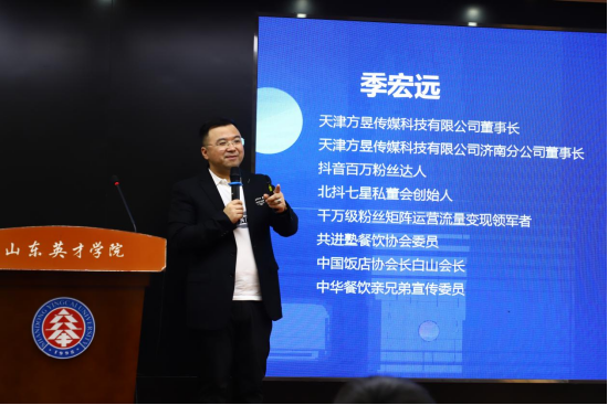 季宏遠(yuǎn)董事長(zhǎng)圍繞抖音的風(fēng)口和趨勢(shì)、如何運(yùn)營(yíng)抖音賬號(hào)及方昱傳媒公司成功案例三個(gè)方面的內(nèi)容展開(kāi),為現(xiàn)代新媒體營(yíng)銷與商科人才培養(yǎng)的深度融合提供了新思路。