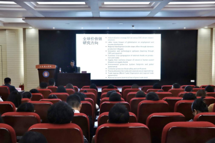 高敬峰教授從科研工作的必要性、科研工作的方法論兩個話題展開講座。高校教師既要教學(xué)也要科研,教學(xué)與學(xué)術(shù)研究相互促進(jìn),有利于教師的成長與發(fā)展,因此鼓勵教師有能力的情況下教學(xué)與科研“兩條腿走路”。此外,高教授結(jié)合商學(xué)院青年教師的現(xiàn)狀與需求,在項目指導(dǎo)書、課題設(shè)計、論文寫作、實證分析等方面進(jìn)行了重點指導(dǎo)。為深入介紹商科論文的寫作方向,高敬峰教授以國際貿(mào)易的研究領(lǐng)域為例,介紹了全球價值鏈、企業(yè)行為、產(chǎn)品質(zhì)量、經(jīng)貿(mào)協(xié)定、對外開放與宏觀經(jīng)濟(jì)等研究熱點。