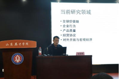 在講座開始前舉辦了山東英才學(xué)院商學(xué)院學(xué)術(shù)帶頭人聘任儀式,商學(xué)院院長趙坤為高敬峰教授頒發(fā)聘書,高敬峰教授在國際貿(mào)易領(lǐng)域研究深入、學(xué)術(shù)成果豐碩,將為商學(xué)院的教師隊伍建設(shè)、科研水平提升等方面貢獻(xiàn)智慧與力量。