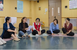 在培訓(xùn)過(guò)程中,武美老師通過(guò)熟識(shí)游戲、小組爆發(fā)性游戲、小組圓圈游戲、身體意識(shí)類游戲四大類,幫助各位教師更快更好的進(jìn)入教育戲劇工作坊,在武美老師不斷的啟發(fā)誘導(dǎo)下,教室里一陣陣傳出教師們舒心的笑聲。在寬松自由的空間里,教師們大膽思考和創(chuàng)作,用身心感受舞臺(tái),用肢體語(yǔ)言表達(dá)對(duì)戲劇內(nèi)容的理解,感悟戲劇的魅力。