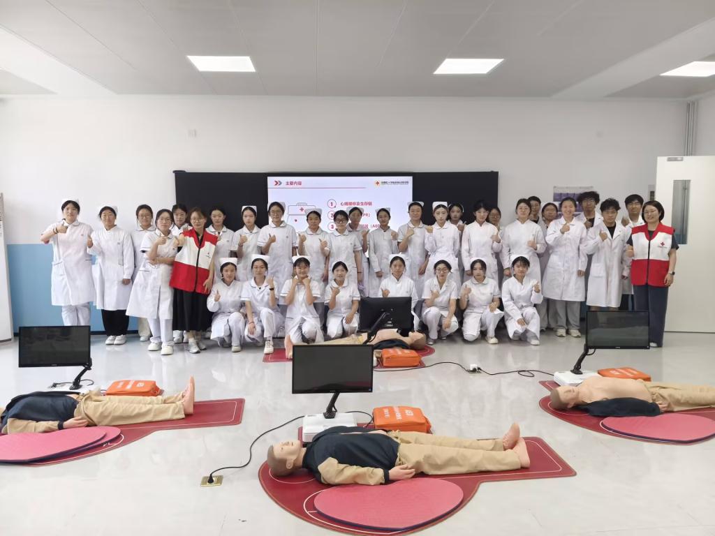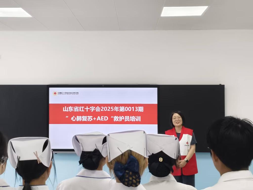 為增強(qiáng)醫(yī)學(xué)院學(xué)生應(yīng)急救護(hù)能力,弘揚(yáng)“人道、博愛(ài)、奉獻(xiàn)”的紅十字精神,近日,由山東省紅十字會(huì)主辦、山東英才學(xué)院承辦的2025年第0013期“心肺復(fù)蘇+ AED”救護(hù)員培訓(xùn)順利開(kāi)展。夏淑娟、劉敏、高星星三位老師擔(dān)任培訓(xùn)講師,醫(yī)學(xué)院護(hù)理專業(yè)2022 - 2024級(jí)的學(xué)生及兩名教師共40人參與此次培訓(xùn),系統(tǒng)學(xué)習(xí)“心肺復(fù)蘇+ AED”的急救知識(shí)與技能。
