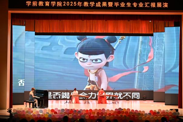 展演以序章“青春啟幕,夢想萌芽”拉開帷幕,開場舞《舞動青春》中,舞者們以靈動身姿詮釋青春活力,點燃現(xiàn)場熱情。隨后,“成長印記,藝路芳華”章節(jié)通過《玉盤玉盤》《石板路上的笑聲》《第二圓舞曲》《Lucifer》等節(jié)目,展現(xiàn)了學子們在藝術道路上的成長與蛻變,彰顯了他們對幼教事業(yè)的堅定信仰。