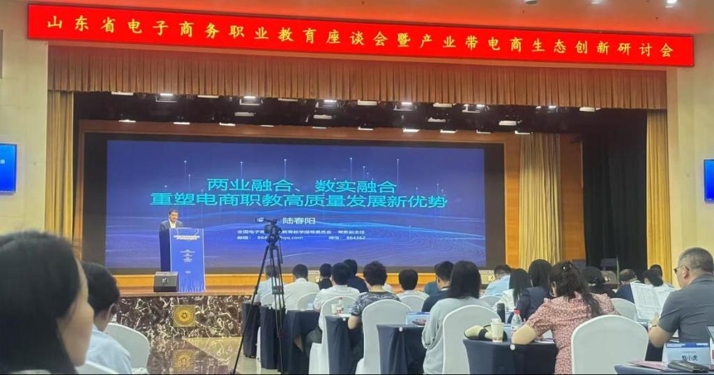 為積極響應(yīng)教育部新版職業(yè)教育專業(yè)教學(xué)標(biāo)準(zhǔn),推動電子商務(wù)類專業(yè)高質(zhì)量發(fā)展,全國電子商務(wù)職業(yè)教育教學(xué)指導(dǎo)委員會(全國電商行業(yè)指導(dǎo)委員會)于2025年6月13日在濟(jì)南燕子山莊召開“山東省電子商務(wù)職業(yè)教育座談會暨產(chǎn)業(yè)帶電商生態(tài)創(chuàng)新研討會”,共同探討電商教育與產(chǎn)業(yè)融合的新路徑。山東英才學(xué)院商學(xué)院(國際學(xué)院)由院長趙坤帶隊,國際商務(wù)系教研室主任尹瑞林、電子商務(wù)專業(yè)負(fù)責(zé)人馬翠平老師及專任教師隋夢飛一行四人參加了此次會議。