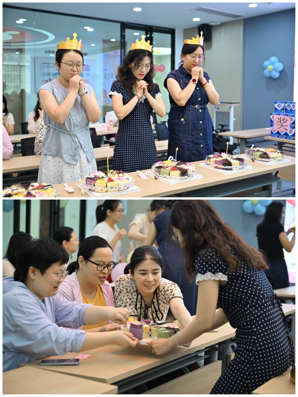 伴隨著溫馨的生日歌聲,三位“壽星”老師被請(qǐng)到臺(tái)前。在全體教師熱烈的掌聲和祝福的歌聲中,她們共同切開了象征團(tuán)結(jié)與祝福的生日蛋糕。奶油的甜香與滿室的歡聲笑語交融,現(xiàn)場(chǎng)洋溢著溫暖而熱烈的氛圍。老師們圍坐在一起,分享著甜蜜的蛋糕,交流著工作與生活的點(diǎn)滴。平日里嚴(yán)謹(jǐn)認(rèn)真的思政課教師們,此刻展露出真摯溫情的一面。這小小的蛋糕,成為緊密連接彼此的情感紐帶,也生動(dòng)詮釋了學(xué)?!耙匀藶楸尽钡奈幕砟?。