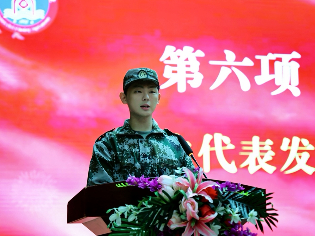 教官代表王潤(rùn)珈在發(fā)言中表示,將與全體教官以過(guò)硬的軍事素質(zhì),科學(xué)施訓(xùn)、以情帶訓(xùn),發(fā)揚(yáng)不怕苦不怕累的精神,認(rèn)真履行教官職責(zé),嚴(yán)格遵守學(xué)校規(guī)章制度,與同學(xué)們同甘共苦、互幫互助,共同完成軍訓(xùn)任務(wù),幫助新生通過(guò)軍訓(xùn)培養(yǎng)愛(ài)國(guó)情懷、鍛造堅(jiān)韌品質(zhì),為新時(shí)代大學(xué)生活奠定堅(jiān)實(shí)基礎(chǔ)。