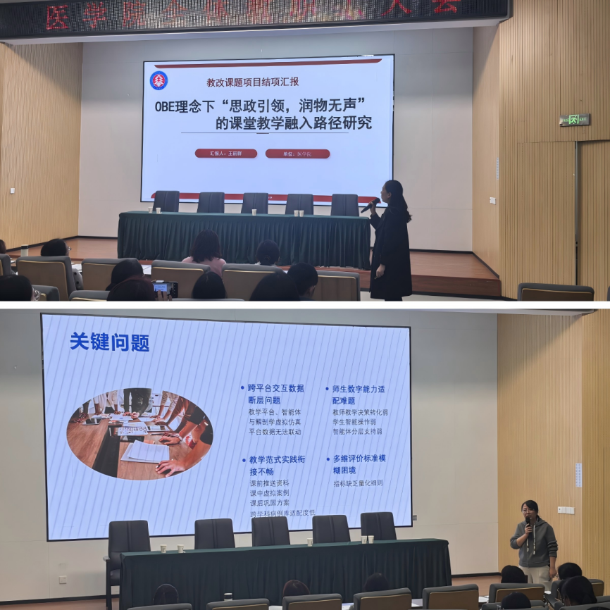本次評(píng)審內(nèi)容涵蓋兩大板塊:一是對(duì)2022-2023年度立項(xiàng)的5項(xiàng)教改課題進(jìn)行結(jié)題驗(yàn)收,這些項(xiàng)目聚焦于人才培養(yǎng)模式創(chuàng)新、課程思政深度融合、智慧教學(xué)平臺(tái)構(gòu)建等前沿方向,全面展示了學(xué)院近期的教改成果;二是聽(tīng)取2025年度濟(jì)南市重點(diǎn)教改項(xiàng)目“三元交互機(jī)制下護(hù)理專(zhuān)業(yè)數(shù)智融合教學(xué)范式的智慧創(chuàng)生路徑構(gòu)建研究”的開(kāi)題匯報(bào),該項(xiàng)目直面教育數(shù)字化浪潮,旨在構(gòu)建新型教學(xué)范式,體現(xiàn)了醫(yī)學(xué)院教改工作的持續(xù)創(chuàng)新力與前瞻性。