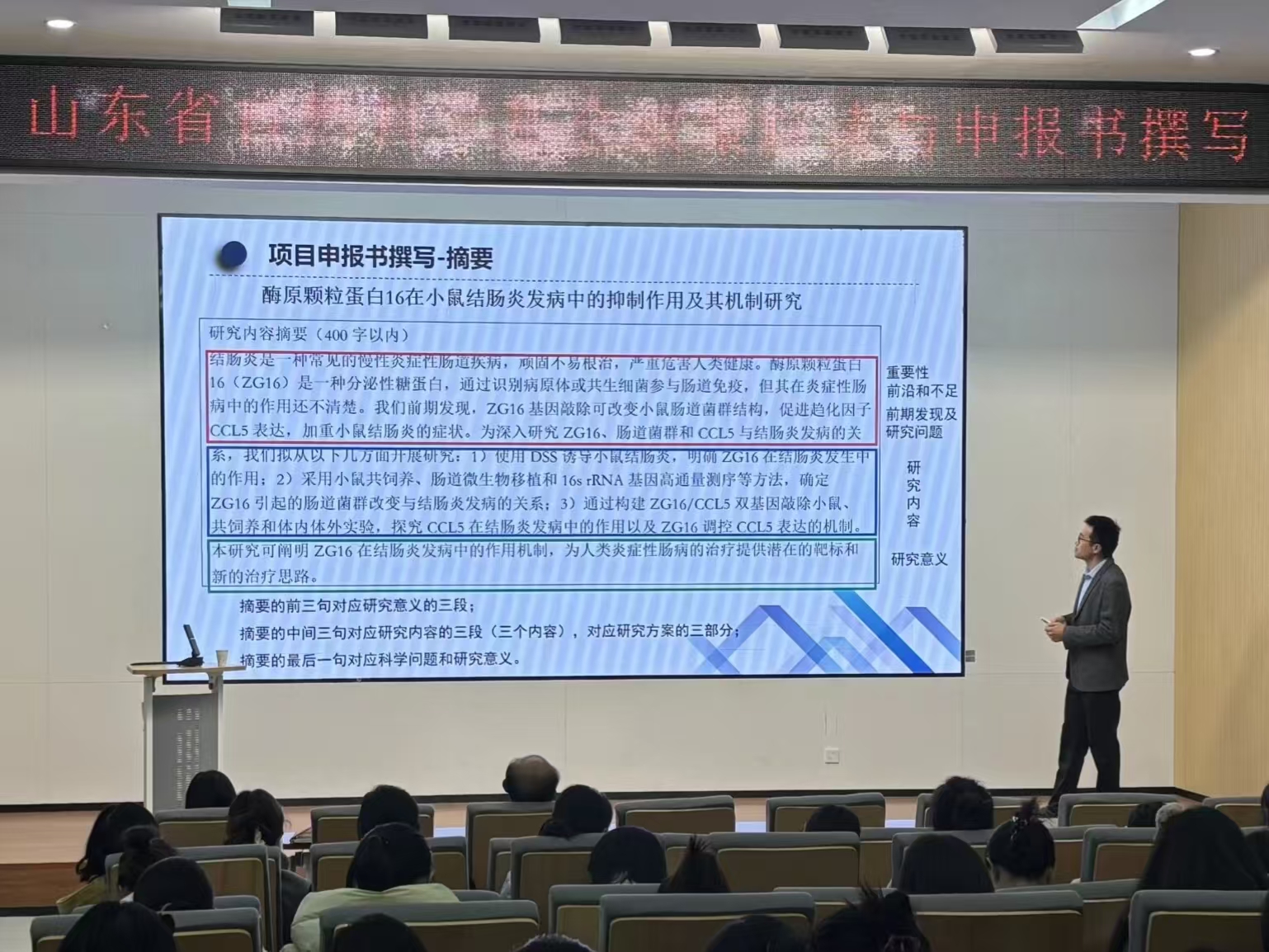 為助力教師精準把握山東省自然科學基金申報要點,提升項目申報質(zhì)量,2025年11月4日下午,醫(yī)學院在學術(shù)報告廳成功舉辦“山東省自然科學基金政策解讀與申報書撰寫”專題培訓講座。講座特邀山東師范大學生命科學學院李華教授擔任主講,醫(yī)學院全體教師及工學院部分教師參加。