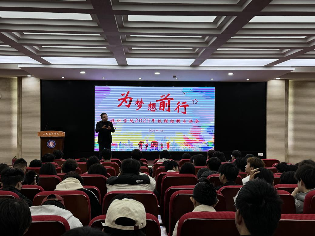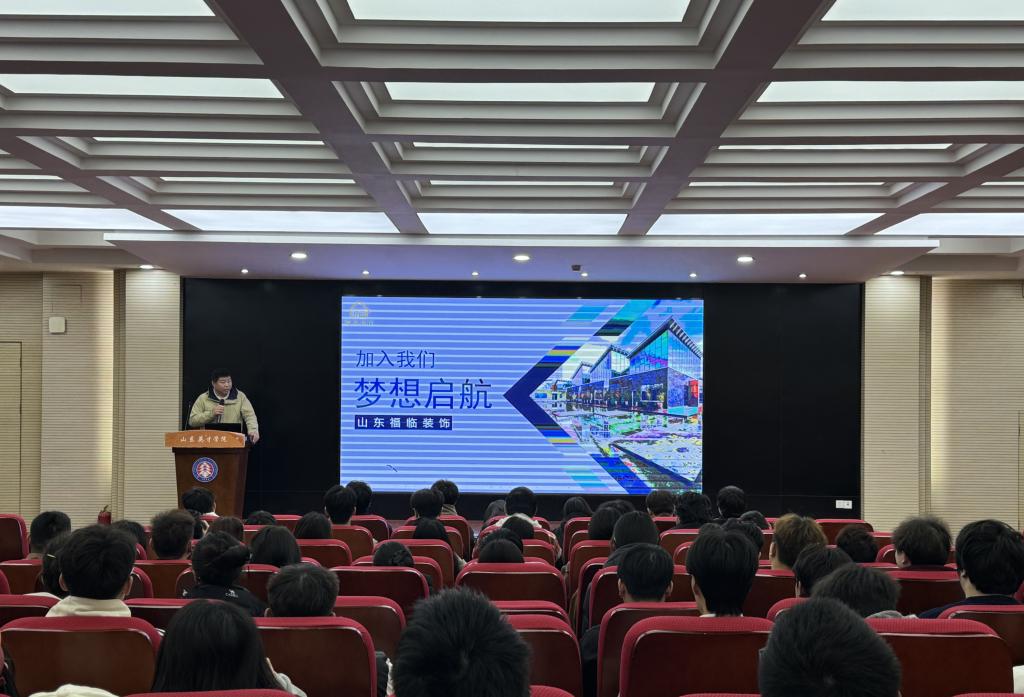 為切實搭建校企合作平臺,助力2026屆??飘厴I(yè)班學生精準對接實習崗位,近日,設計學院成功舉辦裝飾行業(yè)專場宣講會。山東福臨裝飾工程有限公司、山東金尚金品裝飾有限公司、山東綠港裝飾工程有限公司、濟南中盈東方萬家裝飾設計有限公司四家本土知名企業(yè)代表蒞臨現(xiàn)場,學院專職書記尚再斐、就業(yè)負責人、畢業(yè)班全體輔導員及200余名應屆畢業(yè)生參會。