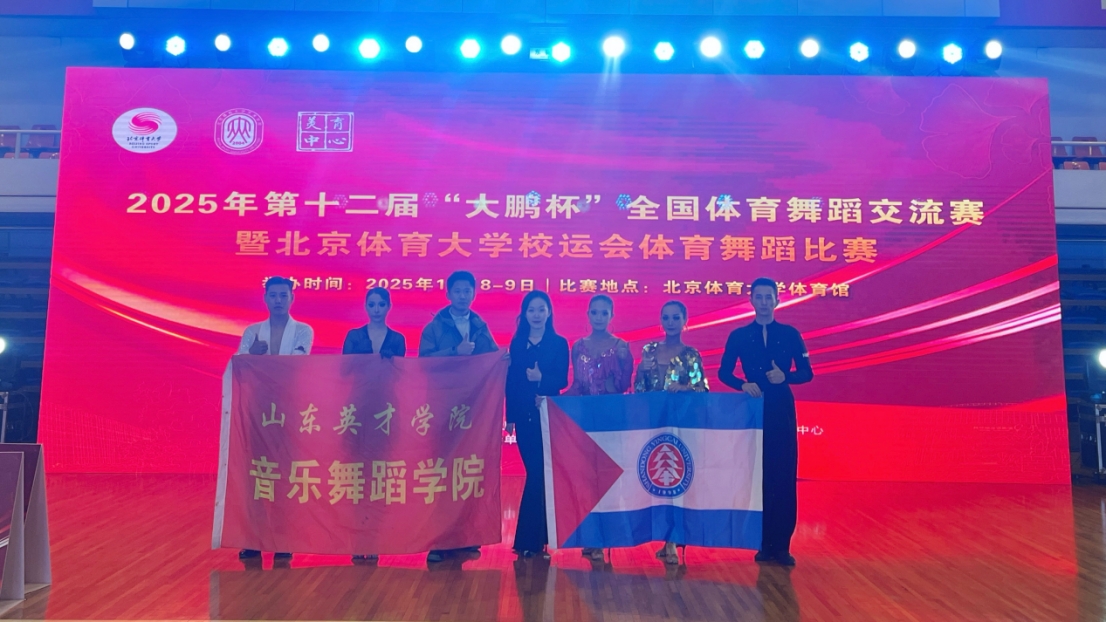 2025年11月8日至9日,第十二屆“大鵬杯”全國(guó)高校體育舞蹈交流賽在北京體育大學(xué)成功舉辦。山東英才學(xué)院國(guó)標(biāo)舞專(zhuān)業(yè)師生代表團(tuán)應(yīng)邀參賽,旨在弘揚(yáng)體育舞蹈文化,加強(qiáng)校際專(zhuān)業(yè)交流,提升學(xué)生綜合素養(yǎng)。經(jīng)過(guò)兩天的激烈角逐與深度互動(dòng),學(xué)院學(xué)子憑借扎實(shí)功底與藝術(shù)表現(xiàn)力取得優(yōu)異成績(jī),并在交流中拓寬視野、收獲成長(zhǎng)。