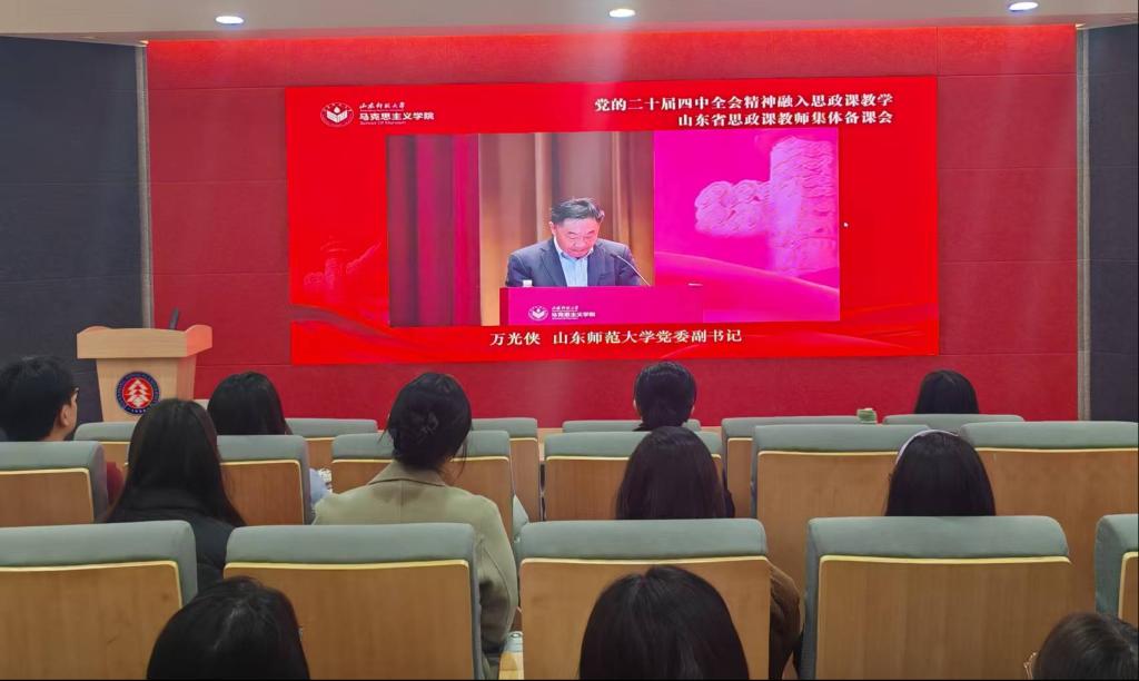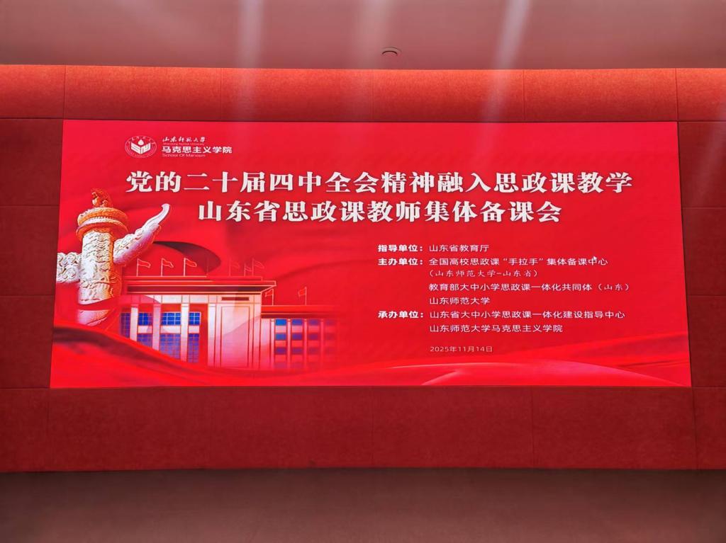 開幕式中,山東省教育廳總督學(xué)王志剛作重要講話。他強(qiáng)調(diào)黨的二十屆四中全會(huì)是在即將進(jìn)入基本實(shí)現(xiàn)社會(huì)主義現(xiàn)代化、夯實(shí)基礎(chǔ)、全面發(fā)力的關(guān)鍵時(shí)期召開的一次十分重要的會(huì)議,全會(huì)審議通過的“十五五”規(guī)劃建議是未來五年的頂層設(shè)計(jì)和戰(zhàn)略規(guī)劃,是乘勢(shì)而上、持續(xù)推進(jìn)中國(guó)式現(xiàn)代化建設(shè)的又一次總動(dòng)員和總部署。要求全省思政課教師切實(shí)提高政治站位,強(qiáng)化使命擔(dān)當(dāng),以本次集體備課會(huì)為契機(jī)充分發(fā)揮關(guān)鍵課程作用,著力推動(dòng)全會(huì)精神學(xué)習(xí)宣傳貫徹落實(shí),并從強(qiáng)化政治自覺、立足崗位職責(zé)、發(fā)揮優(yōu)勢(shì)特長(zhǎng)三個(gè)方面對(duì)推進(jìn)黨的創(chuàng)新理論融入思政課提出新期待。山東師范大學(xué)黨委副書記萬光俠對(duì)各地專家學(xué)者的到來表示感謝,充分肯定了開展此次集體備課會(huì)的必要性和重要性,并鼓勵(lì)廣大思政課教師深刻領(lǐng)會(huì)全會(huì)精神的核心要義,切實(shí)推動(dòng)全會(huì)精神融入思政課教學(xué),為培養(yǎng)堪當(dāng)民族復(fù)興大任的時(shí)代新人提供堅(jiān)實(shí)思想支撐。開幕式由山東師范大學(xué)黨委常委、宣傳部部長(zhǎng)于曉明主持。