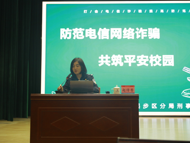 隨后,趙傳香警官?gòu)木W(wǎng)絡(luò)詐騙常見(jiàn)的手法、危害,實(shí)際的案例及如何防止被騙等方面給師生上了一堂精彩的反詐防騙課。她提醒大學(xué)生在網(wǎng)購(gòu)、社交、支付等場(chǎng)景中,要充分注重個(gè)人信息的保護(hù),樹(shù)立健康的金錢(qián)觀和消費(fèi)觀,努力提升自身網(wǎng)絡(luò)信息甄別和風(fēng)險(xiǎn)應(yīng)對(duì)能力,讓師生知曉詐騙手段、掌握應(yīng)對(duì)方法,不斷提升自我防范意識(shí)和辨別是非能力。并結(jié)合學(xué)校的真實(shí)案例向在場(chǎng)師生講解了與校園安全密切相關(guān)的法律法規(guī)及應(yīng)急處置措施,旨在增強(qiáng)學(xué)生的自我防范電詐意識(shí),培養(yǎng)健全人格。同時(shí),趙警官呼吁全體師生積極參與校園安全穩(wěn)定建設(shè),時(shí)刻繃緊安全弦,共同為平安校園建設(shè)貢獻(xiàn)青春力量。
