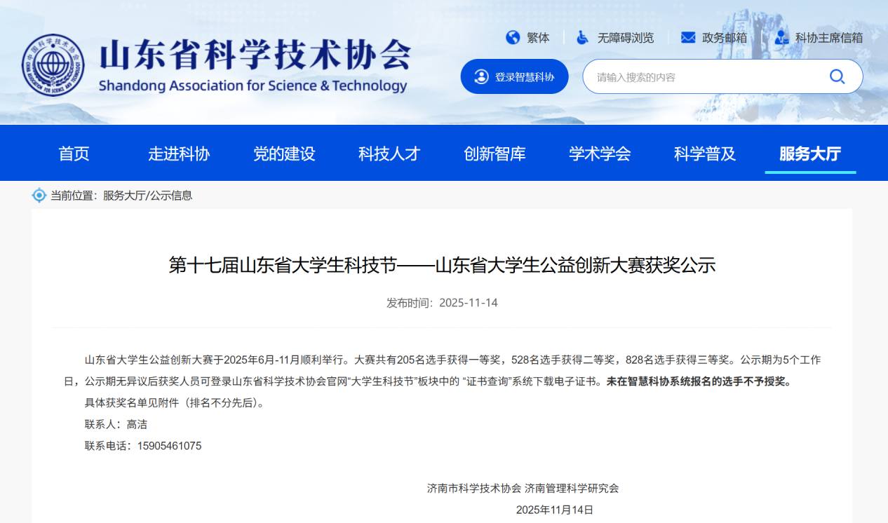 近日,第十七屆山東省大學(xué)生科技節(jié)—山東省大學(xué)生公益創(chuàng)新大賽圓滿落幕。本次大賽以聚焦社會(huì)公益需求、培育青年公益創(chuàng)新力量為核心目標(biāo),搭建起高校公益實(shí)踐交流平臺(tái)。醫(yī)學(xué)院參賽隊(duì)伍成功斬獲二等獎(jiǎng)1項(xiàng)、三等獎(jiǎng)1項(xiàng)。