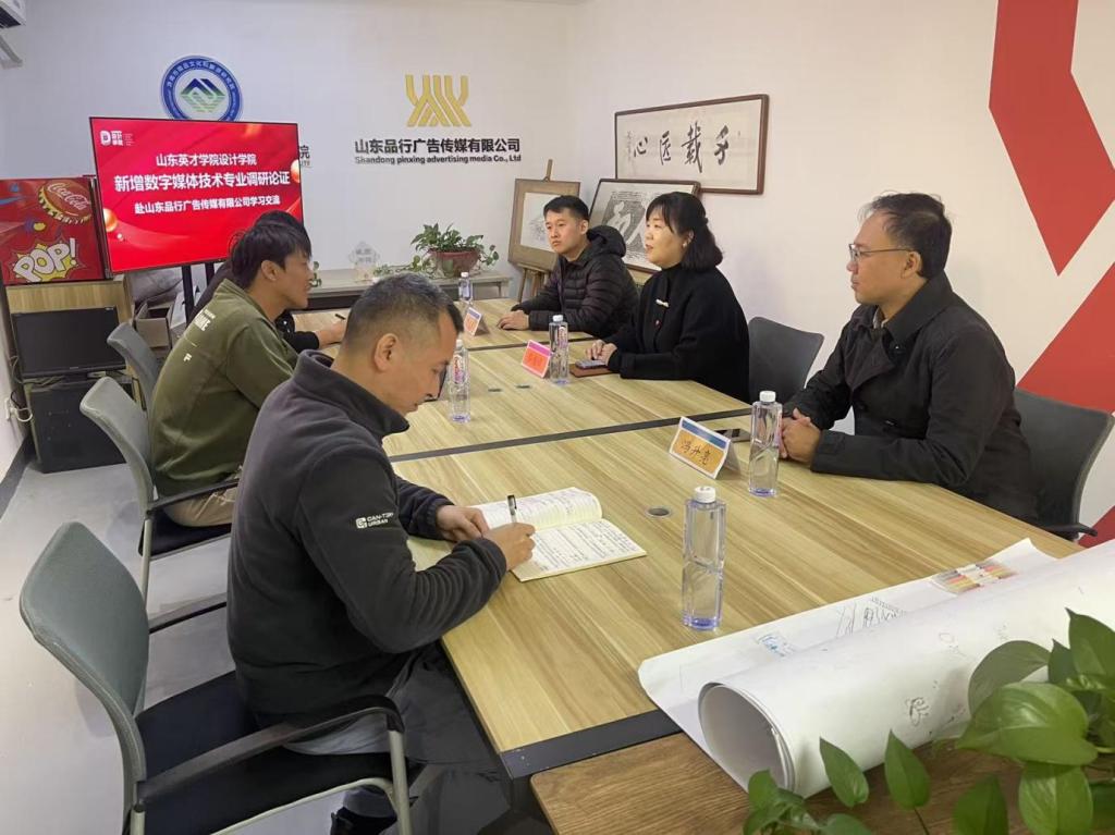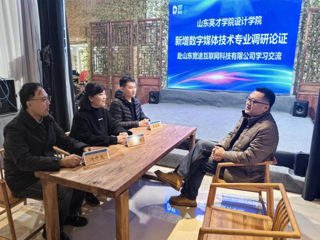 為精準對接數(shù)字媒體行業(yè)發(fā)展趨勢,科學論證新增數(shù)字媒體技術(shù)專業(yè)的人才培養(yǎng)方案,11月20日,山東英才學院設(shè)計學院時尚數(shù)媒系主任李俊峰、數(shù)字媒體藝術(shù)專業(yè)負責人夏兆冬及骨干教師代表一行,先后走訪了山東寬途互聯(lián)網(wǎng)科技有限公司與山東品行廣告?zhèn)髅接邢薰?,開展專項調(diào)研交流。