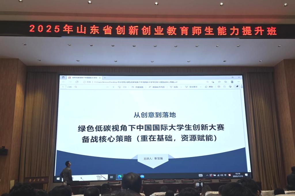 為深入服務綠色低碳高質量發(fā)展戰(zhàn)略,進一步提升教師在綠色低碳領域的創(chuàng)新創(chuàng)業(yè)指導能力,11月13日至14日,由棗莊學院承辦的山東省創(chuàng)新創(chuàng)業(yè)教育師生能力提升班——綠色低碳高質量發(fā)展專項活動成功舉辦。工學院賈楠老師與來自全省各高校的教師代表共同參加了此次培訓。