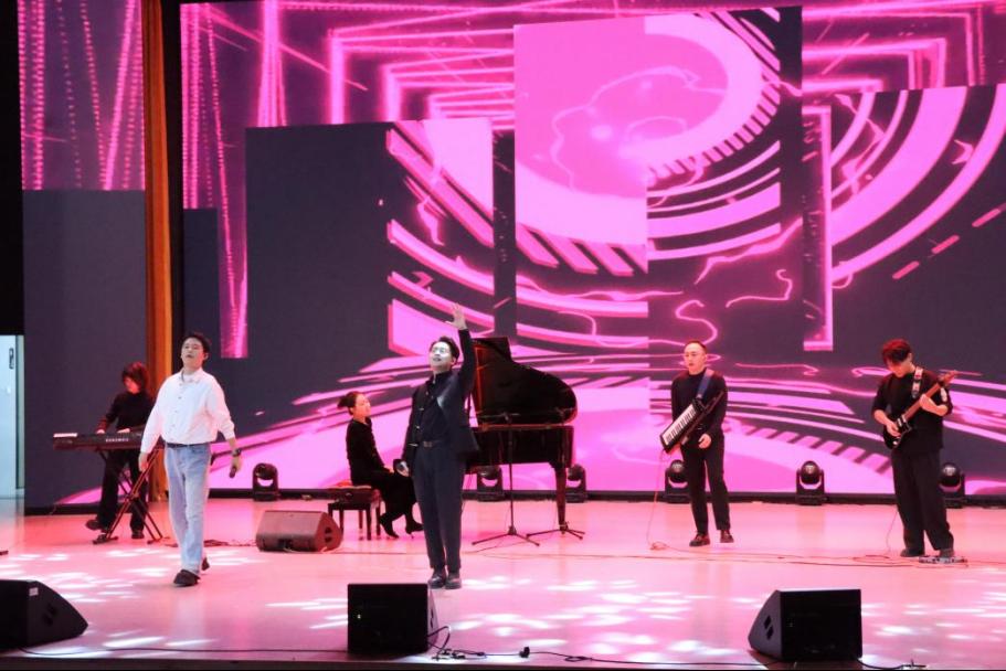 演出在激情四射的流行歌曲《王妃》中拉開序幕,瞬間點燃了現(xiàn)場氣氛。整場晚會匯聚了聲樂、器樂兩大類共19個精彩節(jié)目。聲樂部分,流行、音樂劇、民歌、藝術(shù)歌曲輪番登場,教師們或深情婉轉(zhuǎn)、或高亢嘹亮的歌聲,充分展現(xiàn)了不同聲樂作品的獨特魅力。器樂表演同樣異彩紛呈,古箏演奏典雅靈動,引人入勝;二胡旋律醇厚悠揚,韻味十足;鋼琴四手聯(lián)彈默契配合,旋律在激昂與舒緩間自如流轉(zhuǎn),贏得了全場師生陣陣熱烈的掌聲。