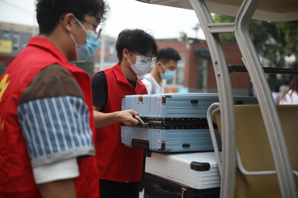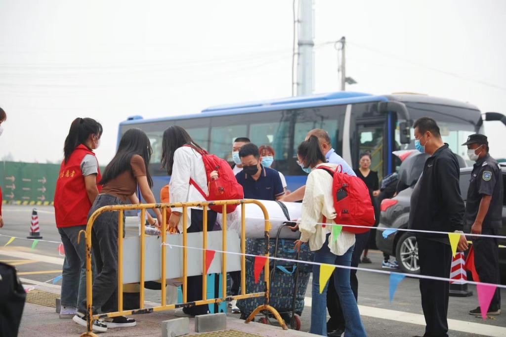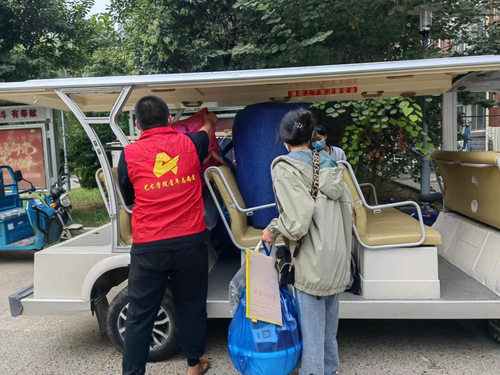 迎新車、小推車在此恭候多時,貼心護(hù)送你到寢室,滿滿的儀式感,希望能讓你有歸屬感。