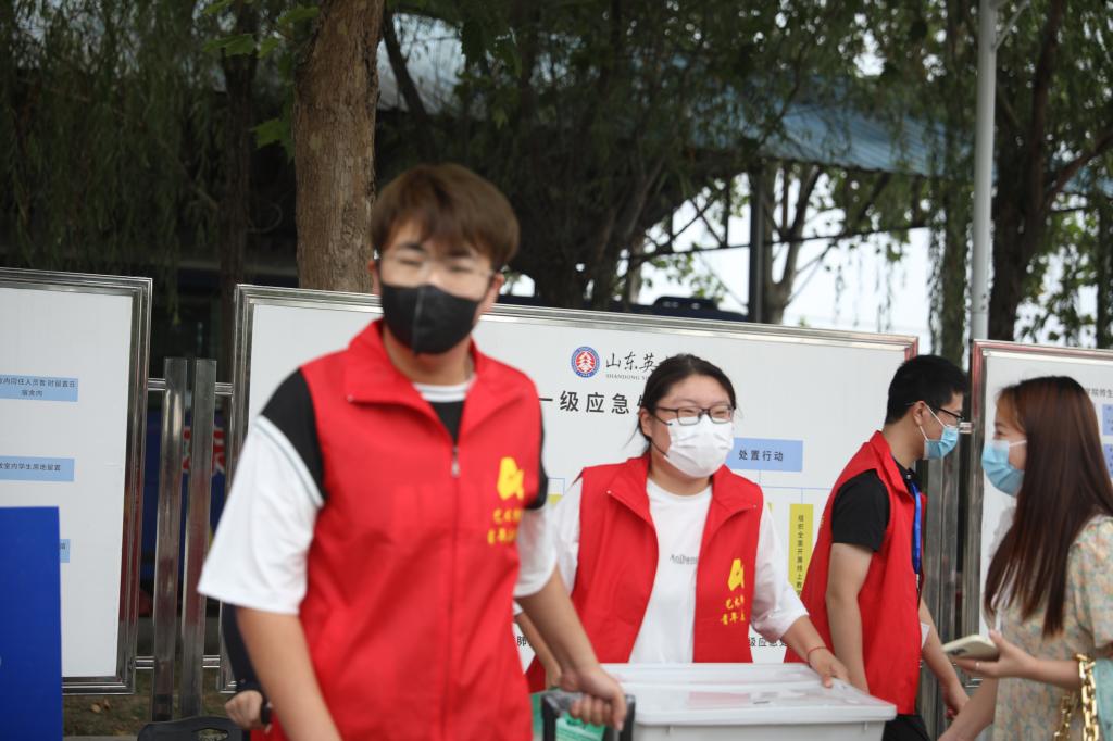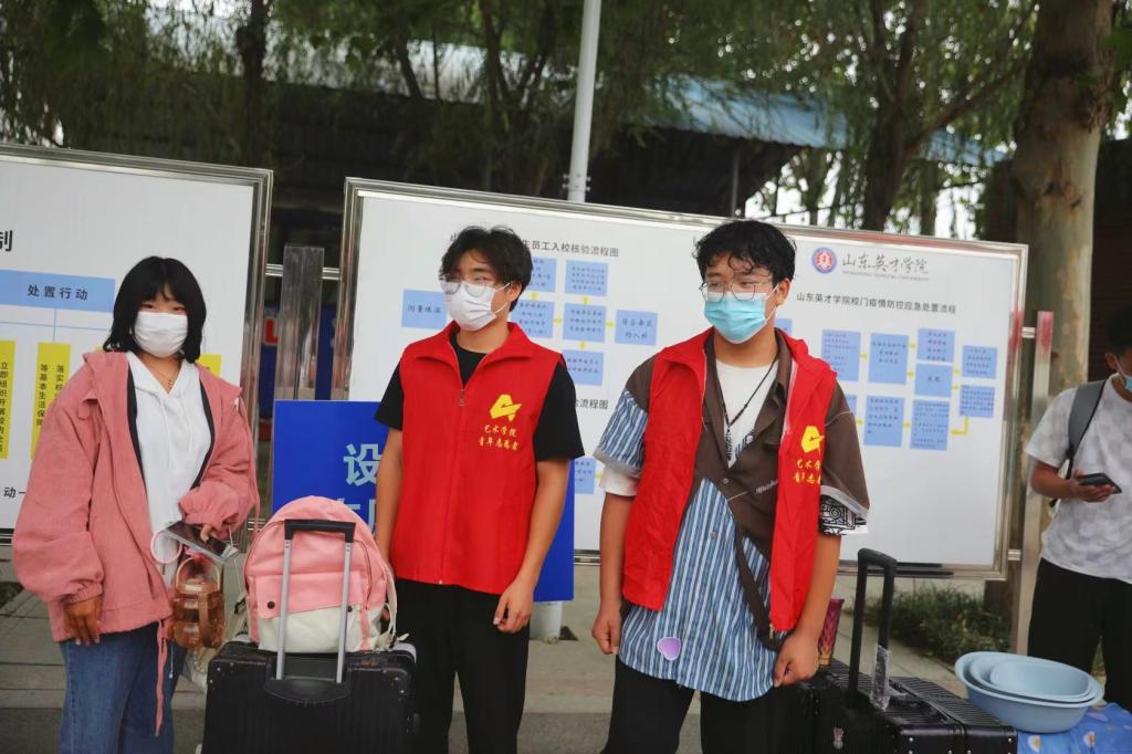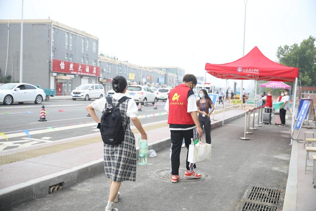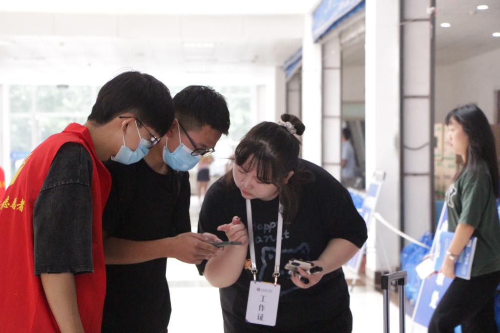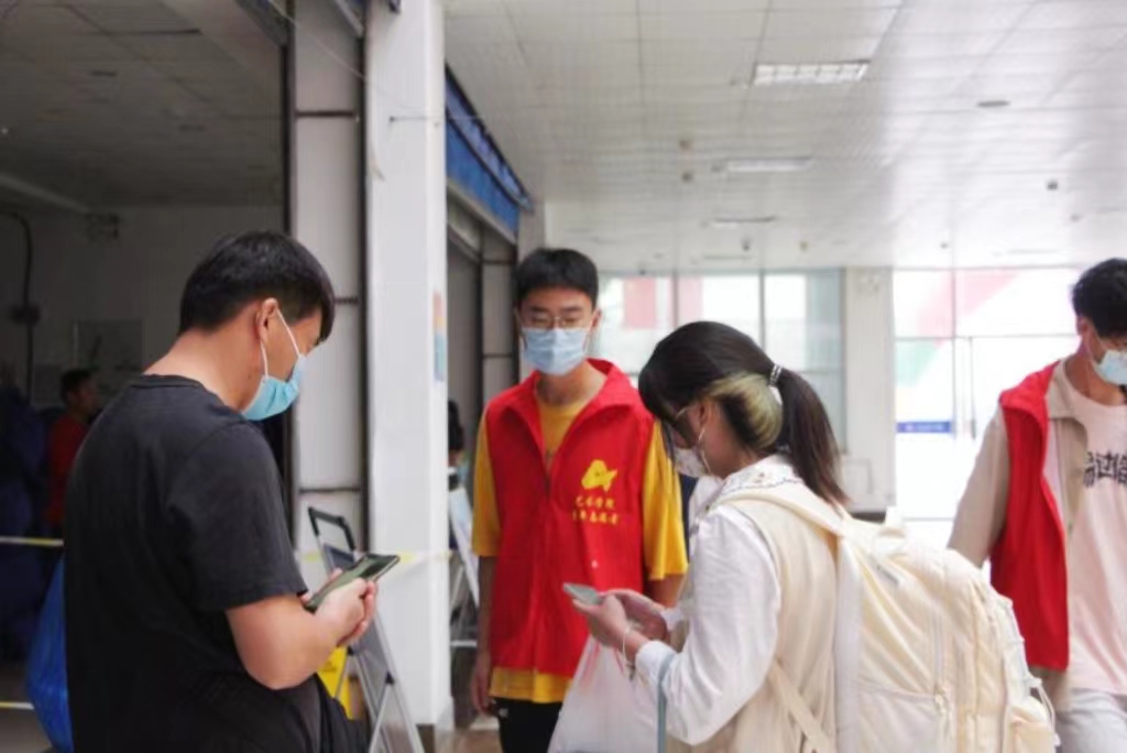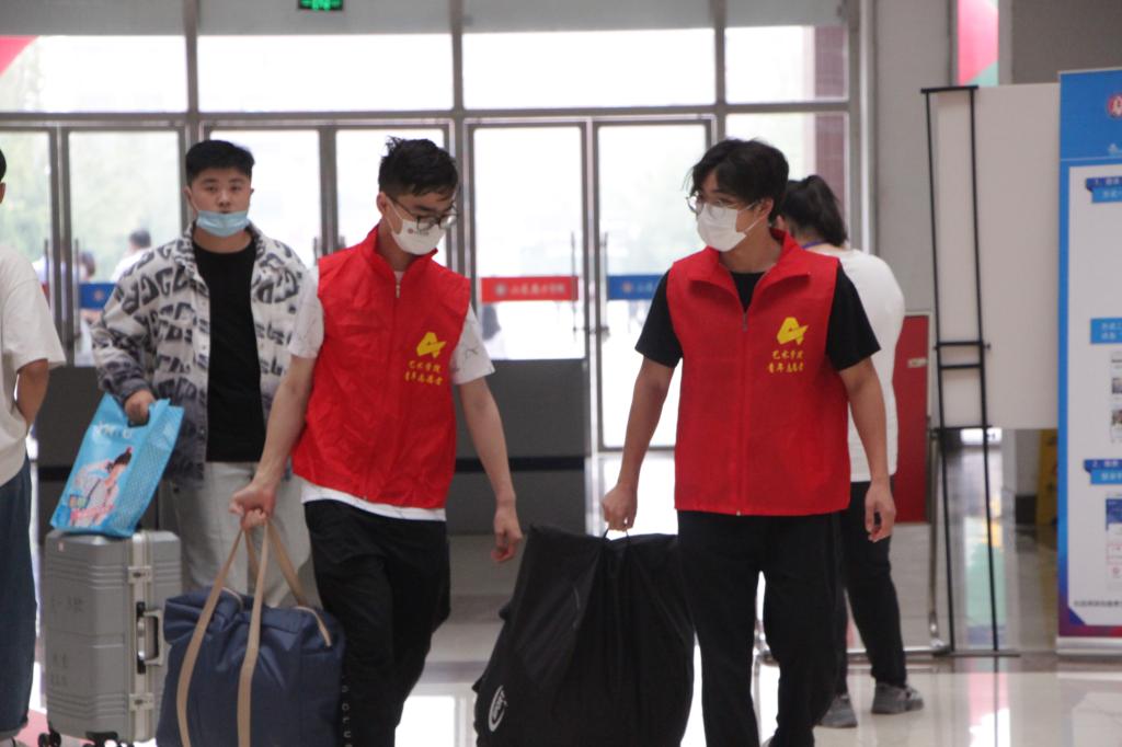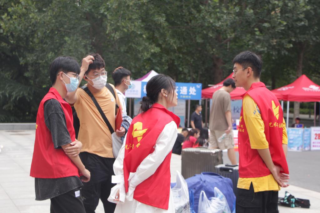 在圖書館報到點(diǎn),“紅馬甲”們幫助新生辦理入學(xué)手續(xù),領(lǐng)取生活用品,他們的細(xì)心、耐心、暖心,給剛剛到校的新生們,帶來家人般的關(guān)懷和溫暖。
