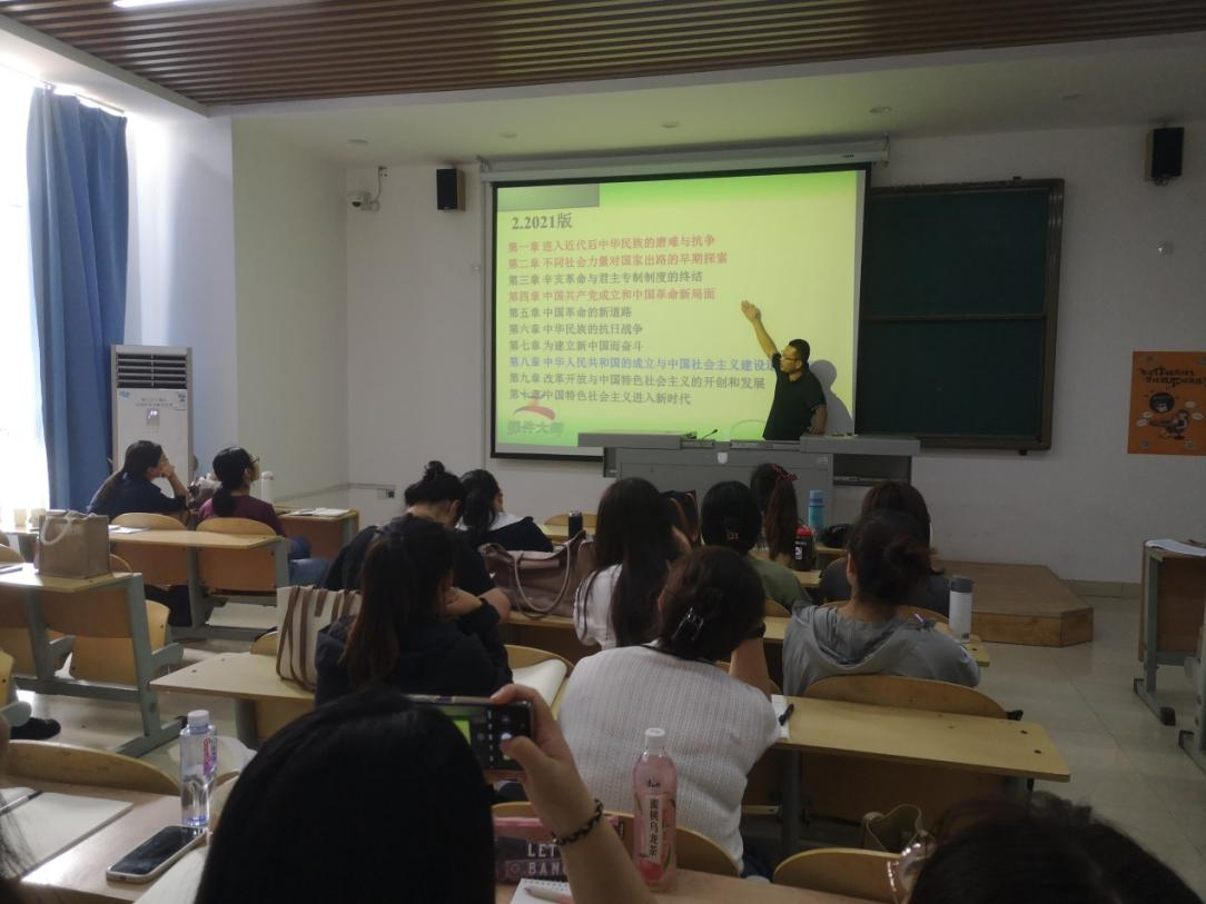培訓(xùn)活動中,思政二教研室主任常志剛老師進(jìn)行了教學(xué)經(jīng)驗(yàn)方面的分享。他圍繞中國近現(xiàn)代史綱要課程,為新聘教師們展示了如何上好一門高校思政課。常主任幽默詼諧的語言和深入淺出的授課方式使新聘教師們得到了極大的啟迪,也直觀地感受到了教學(xué)方式對教學(xué)效果的重要影響,一名好的思政教師應(yīng)當(dāng)憑借過硬的教學(xué)本領(lǐng)站穩(wěn)講臺,進(jìn)而因材施教,做到讓學(xué)生對思政課程真心喜愛、終身受益。