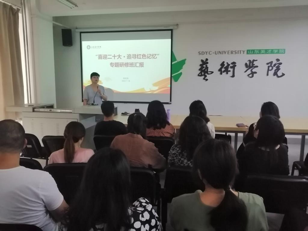 不忘初心跟黨走,憶苦思甜感黨恩。2022年7月18日,伴隨著對課程思政研學的不斷深入,設(shè)計學院教師黨支部開展“喜迎二十大,追隨紅色記憶”黨課學習活動。此次活動由教師支部書記郝瑩主持,全體教師黨員參與。教師黨支部宣傳委員師歡歡于2022年7月8日至12日參加了學校組織開展的“喜迎二十大,追隨紅色記憶”專題研修班,并將寶貴經(jīng)歷及學習心得與教師支部全體黨員教師分享交流。