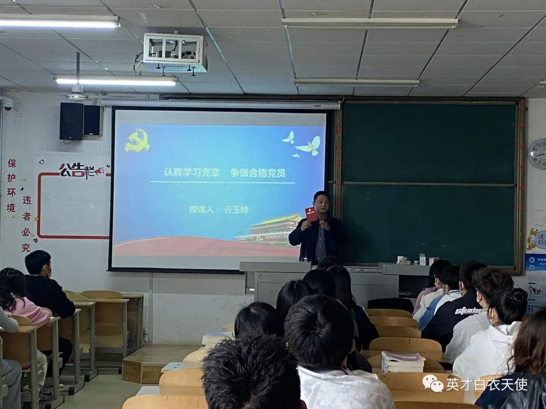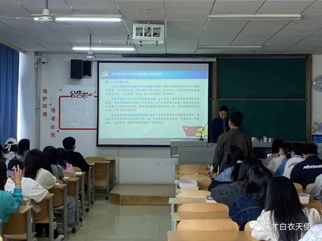 郭婷婷老師向同學(xué)們講到:作為一名合格的黨員,應(yīng)認(rèn)識(shí)到黨員權(quán)利與義務(wù)關(guān)系是密不可分的。郭老師向大家詳細(xì)講述了黨員的八大權(quán)利和義務(wù),結(jié)合同學(xué)們的實(shí)際,大家更要重視學(xué)習(xí)和發(fā)揮模范性的義務(wù),學(xué)習(xí)黨的理論、路線、方針、政策和決議,學(xué)習(xí)黨的基本知識(shí),學(xué)習(xí)科學(xué)、文化、法律和業(yè)務(wù)知識(shí),努力提高為人民服務(wù)的本領(lǐng),貫徹執(zhí)行黨的基本路線和各項(xiàng)方針、政策,帶頭參加改革開(kāi)放和社會(huì)主義現(xiàn)代化建設(shè),帶動(dòng)群眾為經(jīng)濟(jì)發(fā)展和社會(huì)進(jìn)步艱苦奮斗,在生產(chǎn)、工作、學(xué)習(xí)和社會(huì)生活中起先鋒模范作用。