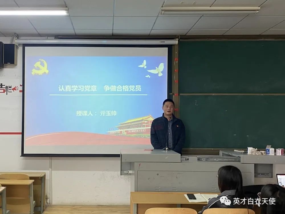 亓玉帥老師首先為入黨積極分子講解了黨章的重要性,同時(shí)沿著中國(guó)共產(chǎn)黨的發(fā)展歷史為大家講述了黨章的變化。亓玉帥老師重點(diǎn)對(duì)黨的性質(zhì)和宗旨、黨的指導(dǎo)思想、黨的奮斗目標(biāo)和歷史任務(wù)等基本知識(shí)系統(tǒng)講述,使全體入黨積極分子對(duì)黨章有了更加深入和全面的認(rèn)識(shí)。