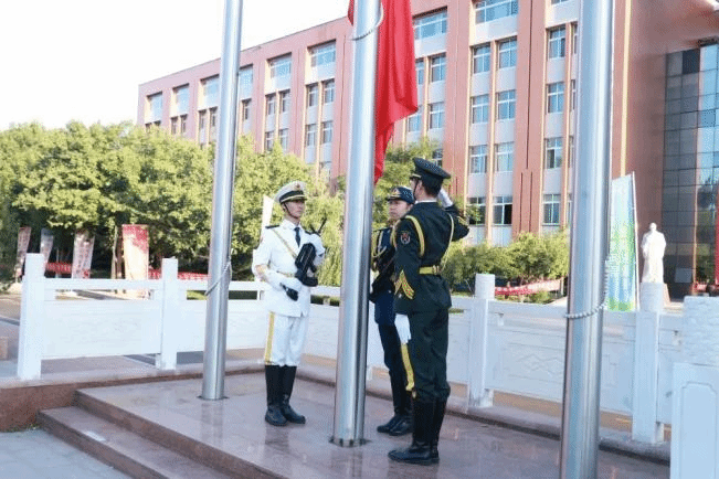 朝陽初升,其道大光。現(xiàn)場學(xué)生列隊整齊,莊嚴(yán)肅立,國旗儀仗隊成員身著正裝,踏著整齊沉穩(wěn)的步伐護(hù)送國旗。現(xiàn)場師生神情莊嚴(yán),向國旗注目行禮。伴隨著激昂雄壯的國歌,鮮艷的五星紅旗冉冉升起,飄揚在學(xué)校的上空。